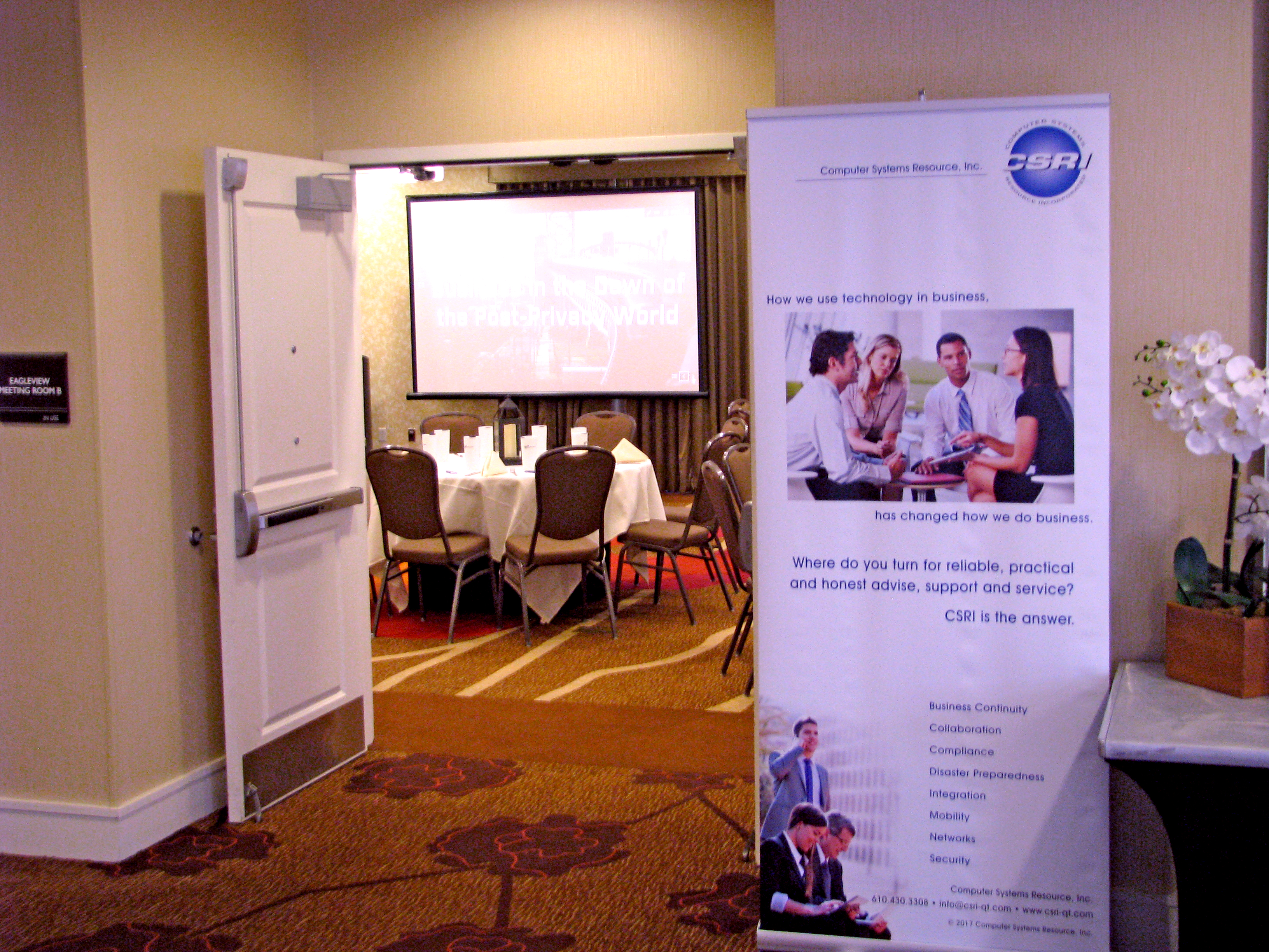 Our topic this year was certainly relevant, as we’re all uneasy about diminishing privacy. Interest was piqued during the run-up based upon conversations that we had with registrants; and, gauging from response, the audience was duly concerned … hopefully they were motivated. If folks went back to their places of business and began a dialogue, we delivered.